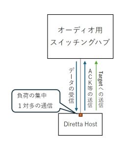 Direttaは、大きな塊のデータを一気に送るのではなく、小さくてタイミングのそろったパケットに小分けして送り、受信側NICの負荷を一定にすることを目標にしているようです。ドライバの設定で分け具合を設定できるようです。
